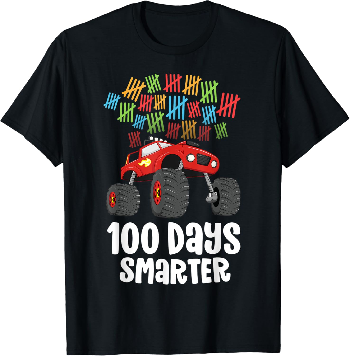 Amazon Com Boys 100th Day Of School Shirt Monster Truck 100 Smarter T Shirt Clothing Shoes Jewelry
